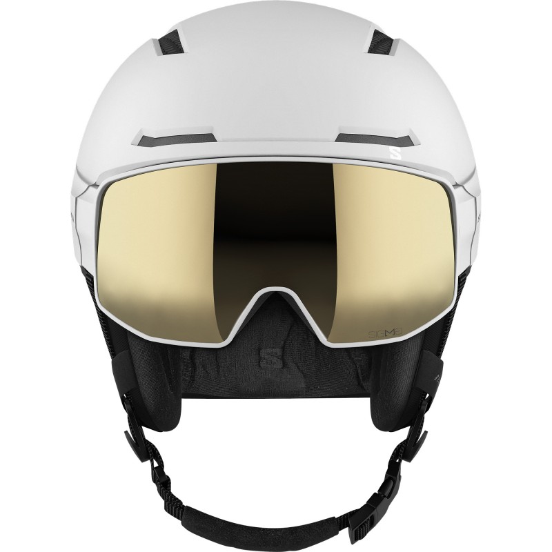 Model DRIVER PRO SIGMA™ to elegancki kask z osłoną przeciwsłoneczną, który oferuje wszystkie niezbędne funkcje kasków z osłoną i tradycyjnych zestawów z goglami. Idealnie zintegrowana osłona przeciwsłoneczna z szybką SIGMA™ poprawia kontrast, a łatwa regulacja dopasowania i funkcje ochronne marki Salomon utrzymują wygodę i bezpieczeństwo. Większy kontrast widzenia kolorów Szybka SIGMA™ poprawia kontrast widzenia kolorów, oferuje szerokie pole widzenia przy minimalnym zniekształceniu obrazu, umożliwia łatwą wymianę i idealnie dopasowuje się do twarzy, nawet w połączeniu z okularami. Poprawiona ochrona W tym kasku wykorzystano technologie poprawiające bezpieczeństwo: Smart Safety oraz EPS4D. Dzięki temu lepiej chroni głowę przed uderzeniami bocznymi i pionowymi. Natychmiastowe, precyzyjne dopasowanie System Custom Dial 360 umożliwia łatwą i precyzyjną regulację, natomiast wzór MaxFit Construction i wygodna wkładka z materiałów pochodzących z recyklingu gwarantują idealne i natychmiastowe dopasowanie.